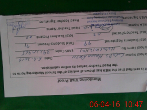 | Attendance Register | Head Teacher | MEA with School | Visit Proof |