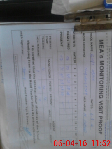 | Attendance Register | Head Teacher | MEA with School | Visit Proof |