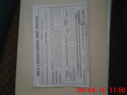 | Monitoring Date: 06-04-2016 | Start Time: 06-04-2016 10:30 AM | End Time: 06-04-2016 11:55 AM | Name of MEA: Mu**** Za**** (S**** | |