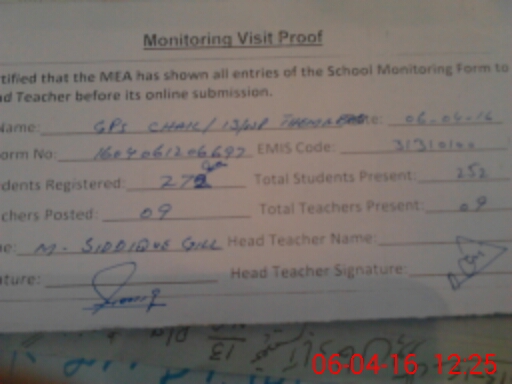 | Attendance Register | Head Teacher | MEA with School | Visit Proof |