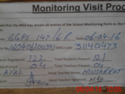 | EMIS Code: 31140473 | Name of School: GGPS CHAK NO. 147/6-R W | |||