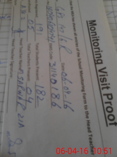 | Attendance Register | Head Teacher | MEA with School | Visit Proof |