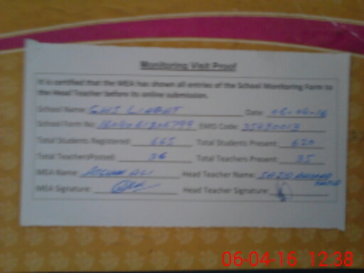 | Attendance Register | Head Teacher | MEA with School | Visit Proof |