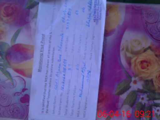 | Attendance Register | Head Teacher | MEA with School | Visit Proof |