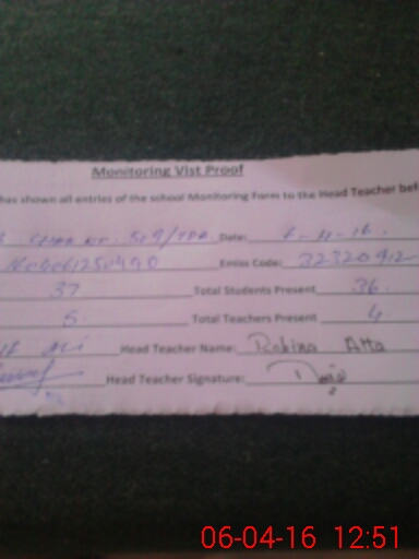 | Attendance Register | Head Teacher | MEA with School | Visit Proof |