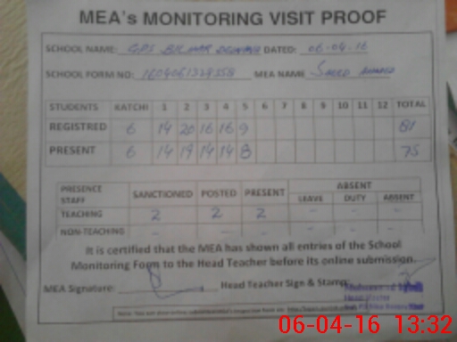 | Attendance Register | Head Teacher | MEA with School | Visit Proof |