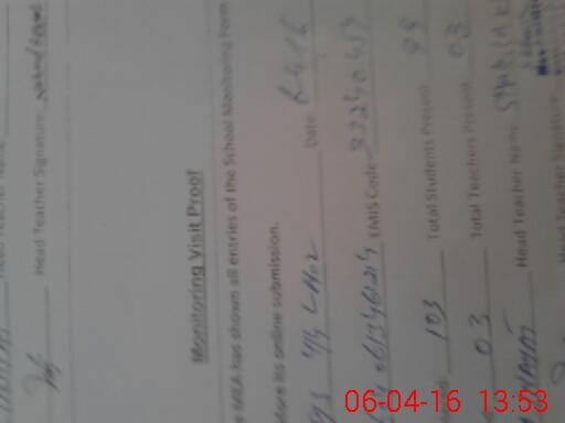 | Attendance Register | Head Teacher | MEA with School | Visit Proof |