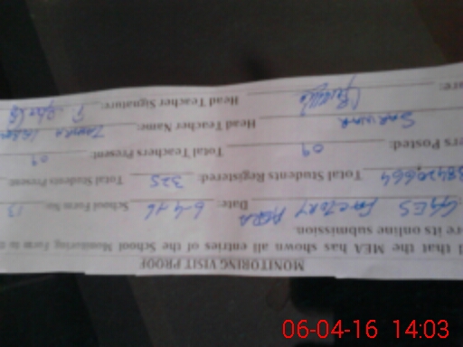 | Certified that this School was Inspected by the Undersigned MEA/DMO Today and the Information Stated Above is as Per Record. | |||||