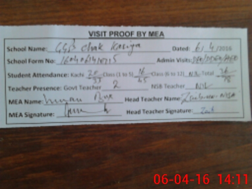 | EMIS Code: 32430165 | Name of School: GGPS CHAK KARIA | |||