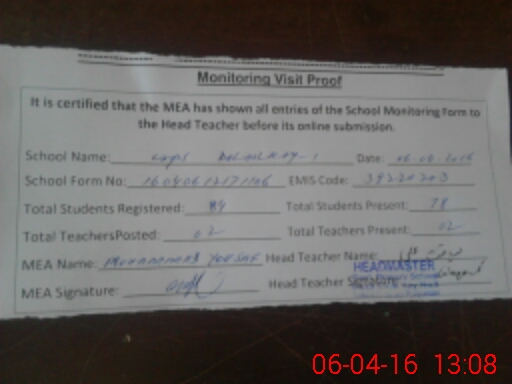| Certified that this School was Inspected by the Undersigned MEA/DMO Today and the Information Stated Above is as Per Record. | |||||
