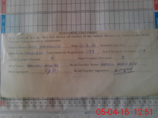 | Attendance Register | Head Teacher | MEA with School | Visit Proof |