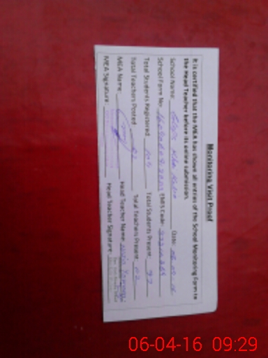 | Attendance Register | Head Teacher | MEA with School | Visit Proof |