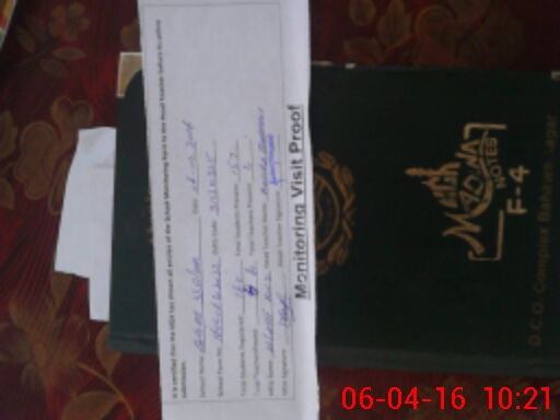 | School Visited by School Health & Nutrition Supervisor (No. of Visits) | Name1: | M MAQSOOD | Name2: | NIL | |