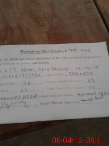 | EMIS Code: 31320625 | Name of School: GGPS ABDUL AZIZ BALOCH | |||