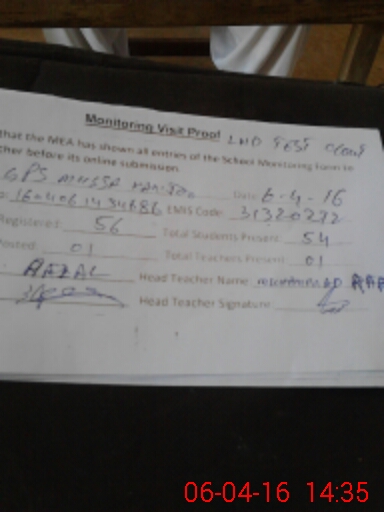 | Certified that this School was Inspected by the Undersigned MEA/DMO Today and the Information Stated Above is as Per Record. | |||||