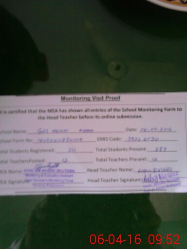 | Attendance Register | Head Teacher | MEA with School | Visit Proof |