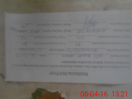 | Certified that this School was Inspected by the Undersigned MEA/DMO Today and the Information Stated Above is as Per Record. | |||||