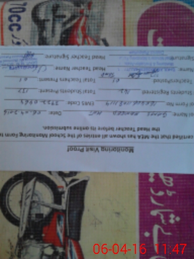 | Name: TA**** SA**** TA**** Designation: (School Headmaster's/Headmistress's) PST Phone/Cell Number: 03**** |