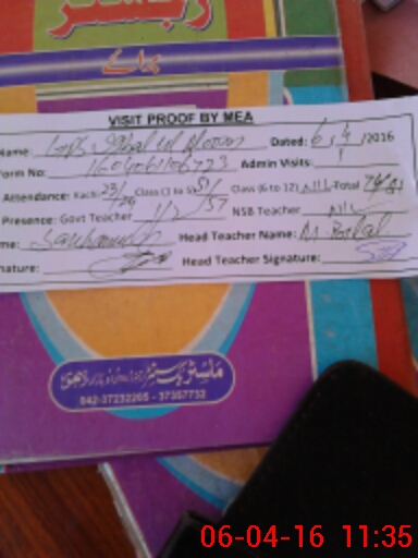 | Attendance Register | Head Teacher | MEA with School | Visit Proof |