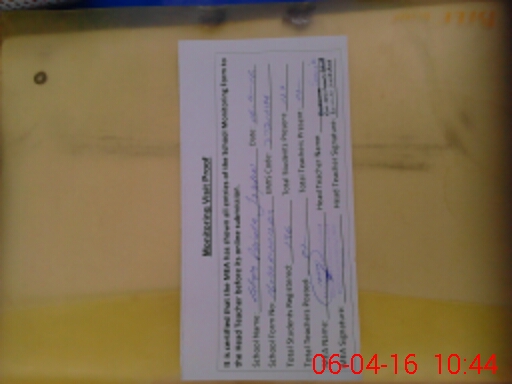 | Attendance Register | Head Teacher | MEA with School | Visit Proof |