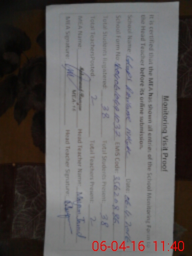 | Remarks (Use Separate Page if Required): General cleaning and house keeping is good Good efforts has been made by head teacher for up lifting of school Weldon head teacher | |||||