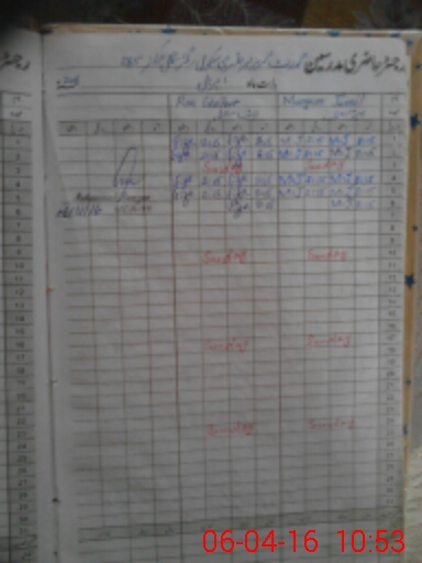 | CNIC | Full Name | Designation | R/C | Absence During Last Calender Month |