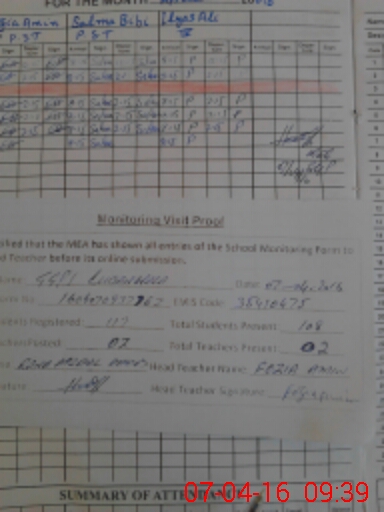 | Attendance Register | Head Teacher | MEA with School | Visit Proof |