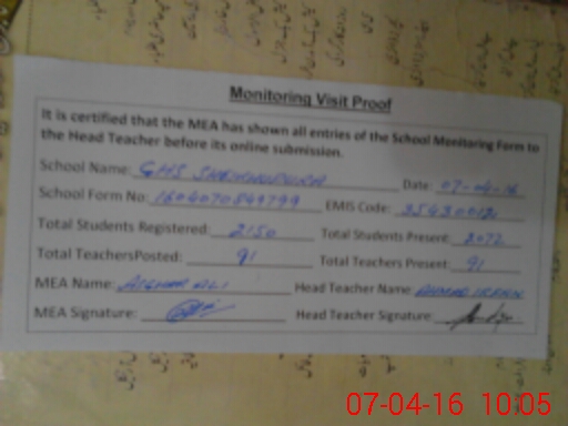 | Certified that this School was Inspected by the Undersigned MEA/DMO Today and the Information Stated Above is as Per Record. | |||||
