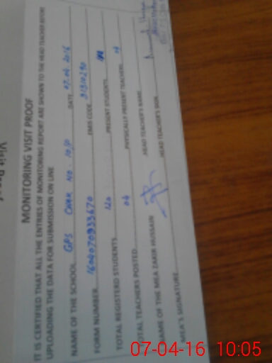 | Monitoring Date: 07-04-2016 | Start Time: 07-04-2016 09:33 AM | End Time: 07-04-2016 10:07 AM | Name of MEA: Za**** Hu**** | |