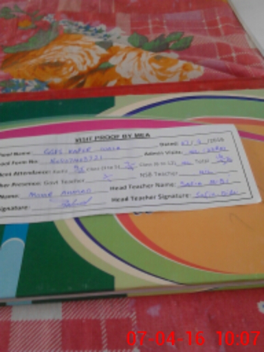 | Attendance Register | Head Teacher | MEA with School | Visit Proof |