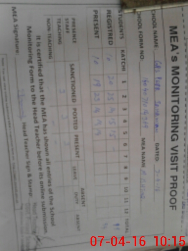 | Monitoring Date: 07-04-2016 | Start Time: 07-04-2016 09:43 AM | End Time: 07-04-2016 10:17 AM | Name of MEA: M.Is**** (S**** 03**** | |