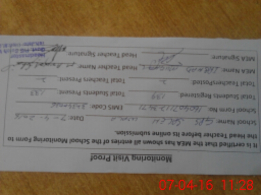 | Certified that this School was Inspected by the Undersigned MEA/DMO Today and the Information Stated Above is as Per Record. | |||||