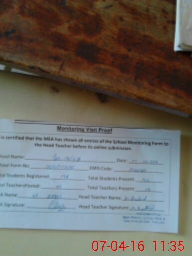 | Attendance Register | Head Teacher | MEA with School | Visit Proof |