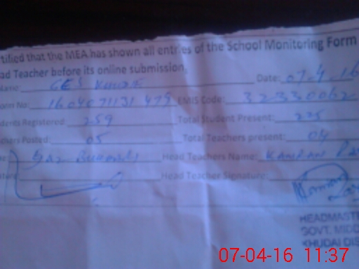 | EMIS Code: 32330062 | Name of School: GHS KHUDAI | |||