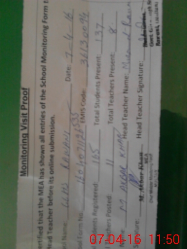 | Certified that this School was Inspected by the Undersigned MEA/DMO Today and the Information Stated Above is as Per Record. | |||||