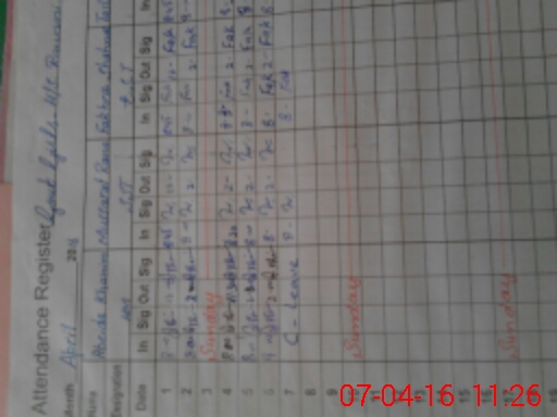 | CNIC | Full Name | Designation | R/C | Absence During Last Calender Month |