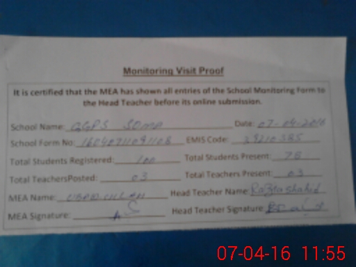 | Certified that this School was Inspected by the Undersigned MEA/DMO Today and the Information Stated Above is as Per Record. | |||||