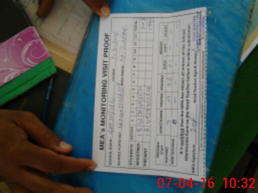 | Attendance Register | Head Teacher | MEA with School | Visit Proof |