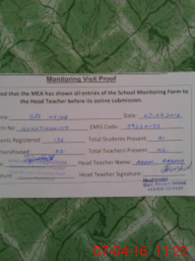 | Attendance Register | Head Teacher | MEA with School | Visit Proof |