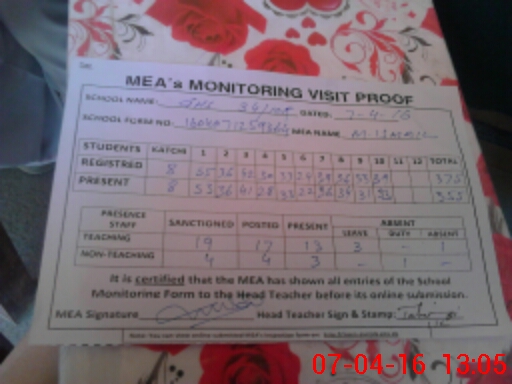 | Attendance Register | Head Teacher | MEA with School | Visit Proof |