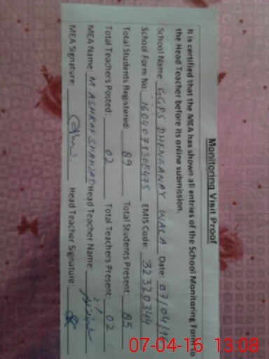| Certified that this School was Inspected by the Undersigned MEA/DMO Today and the Information Stated Above is as Per Record. | |||||