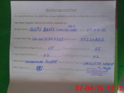 | EMIS Code: 33220842 | Name of School: GGPS BASTI KAMIAN WALI NO. 2 | |||