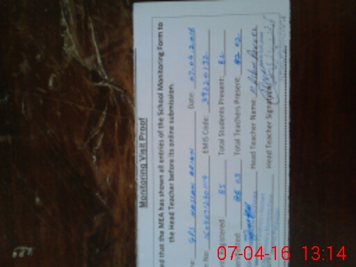 | Attendance Register | Head Teacher | MEA with School | Visit Proof |