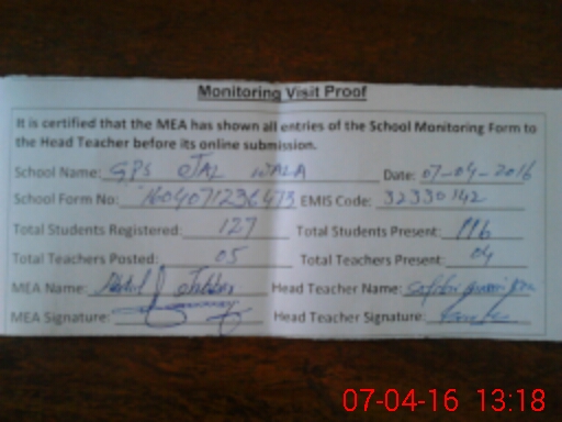 | EMIS Code: 32330142 | Name of School: GPS JAL WALA | |||