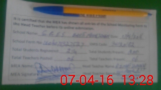 | Attendance Register | Head Teacher | MEA with School | Visit Proof |