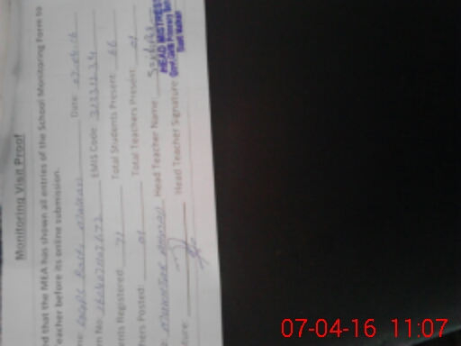 | Monitoring Date: 07-04-2016 | Start Time: 07-04-2016 10:35 AM | End Time: 07-04-2016 11:09 AM | Name of MEA: Mu**** Am**** | |