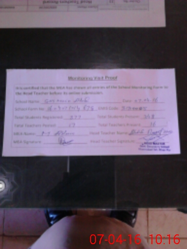 | Attendance Register | Head Teacher | MEA with School | Visit Proof |