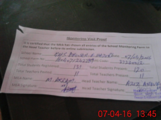 | Certified that this School was Inspected by the Undersigned MEA/DMO Today and the Information Stated Above is as Per Record. | |||||