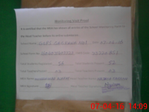 | Certified that this School was Inspected by the Undersigned MEA/DMO Today and the Information Stated Above is as Per Record. | |||||