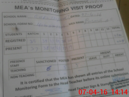 | Certified that this School was Inspected by the Undersigned MEA/DMO Today and the Information Stated Above is as Per Record. | |||||